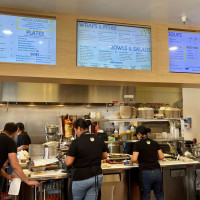 “ After a great time at the White Elephant Sale, we popped in for lunch. Other yelpers pictures and posts looked really good. I went with the Cali bowl and loved how fresh everything was. Nice crispy lettuce & veggies and the hummus was super creamy. I did add some hot sauce since I like spice. Orders came up quickly and counter server was kind and patient. My friend had the Chicken Shwrama and really enjoyed it too. Parking is tight, especially on a rainy Saturday. We sat at the bar which was fine, it was clean. ”